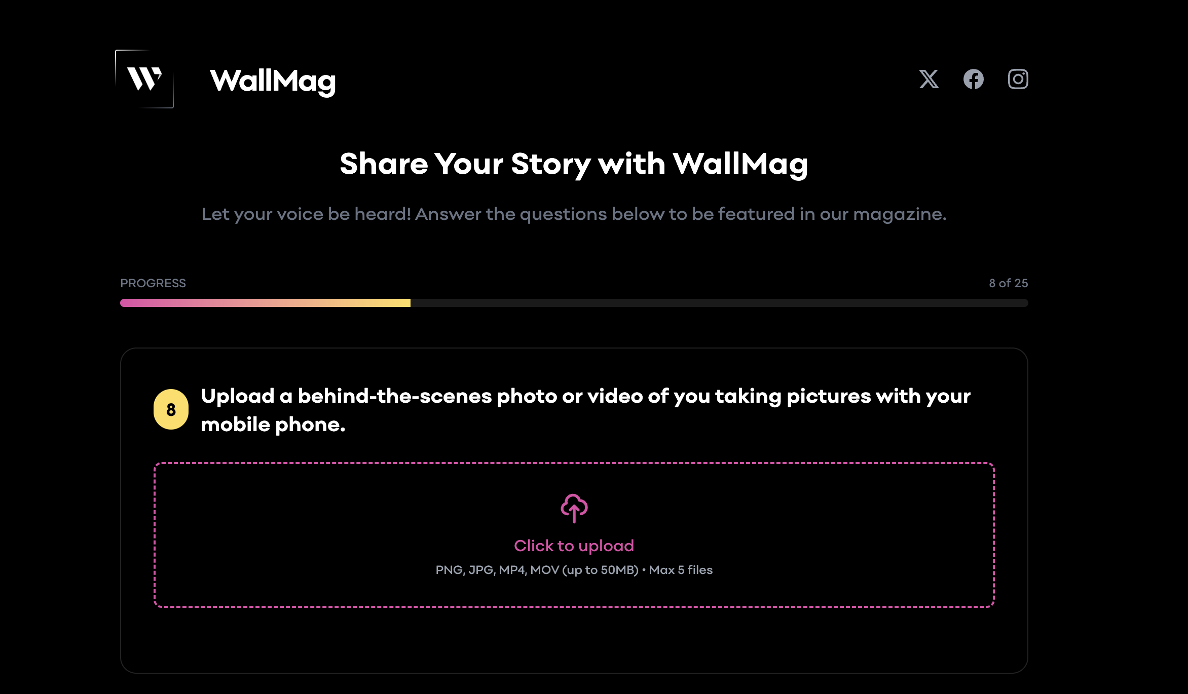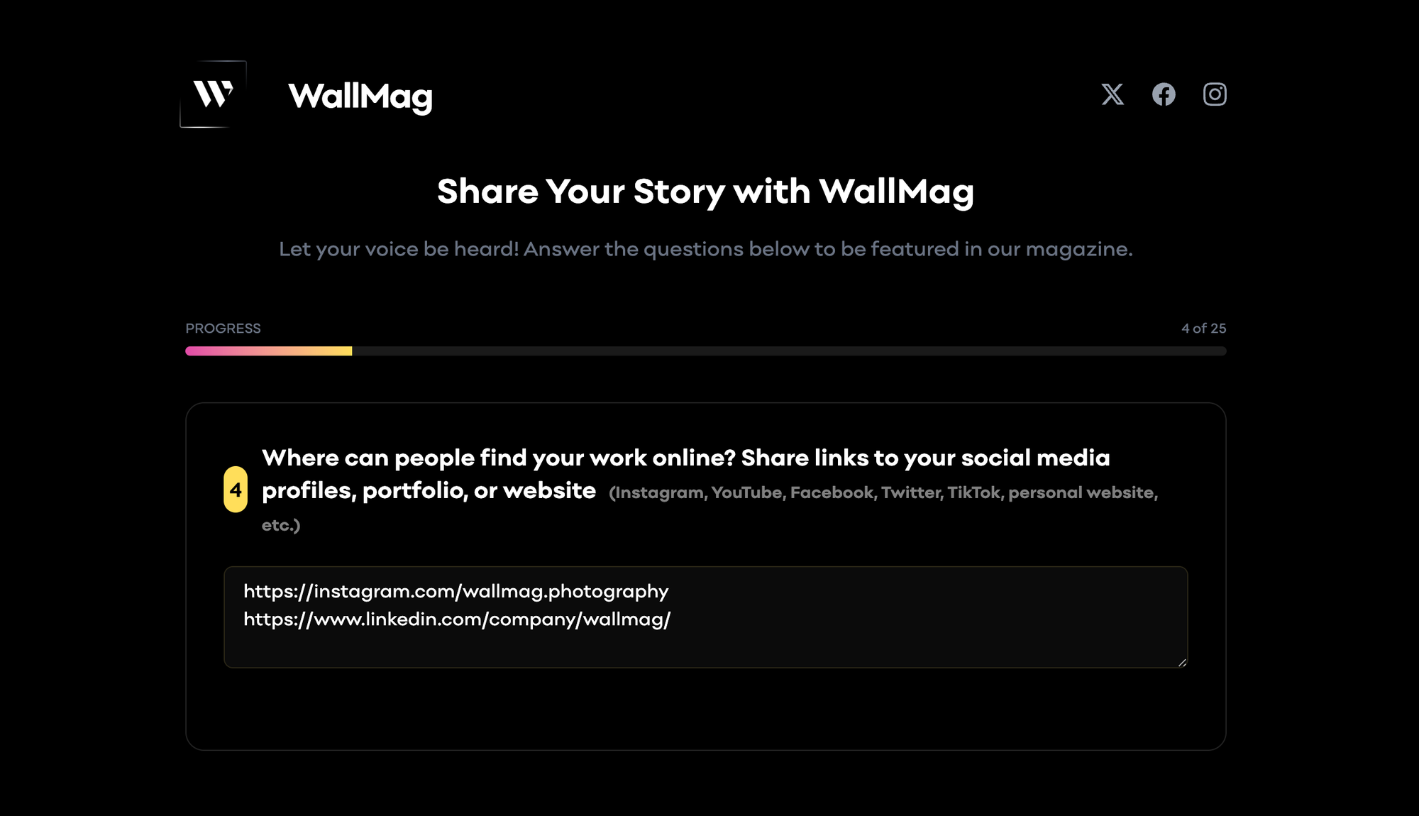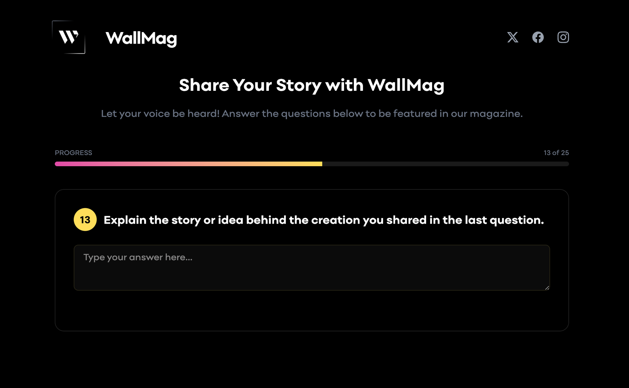 - Your interview will be released in the WallMag Magazine, WallMag Website, WallMag Social Handles, you will receive a certificate of recognition & discount coupon from our partner brands.